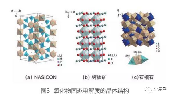 氧化物固體電解質(zhì)按照物質(zhì)結(jié)構(gòu)可以分為晶態(tài)和非晶態(tài)兩類,晶態(tài)電解質(zhì)包括鈣鈦礦型、NASICON型(Na快離子導(dǎo)體)、石榴石型、LISICON型等,玻璃態(tài)(非晶態(tài))氧化物的研究熱點是用在薄膜電池中的 LiPON 型電解質(zhì)和部分晶化的非晶態(tài)材料。